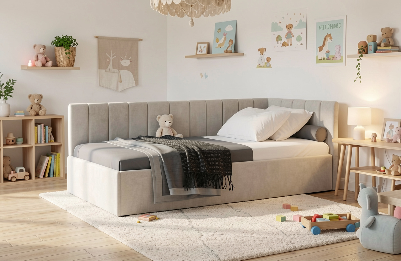 • Универсальная угловая кровать с мягким изголовьем: устанавливается на левую или правую сторону