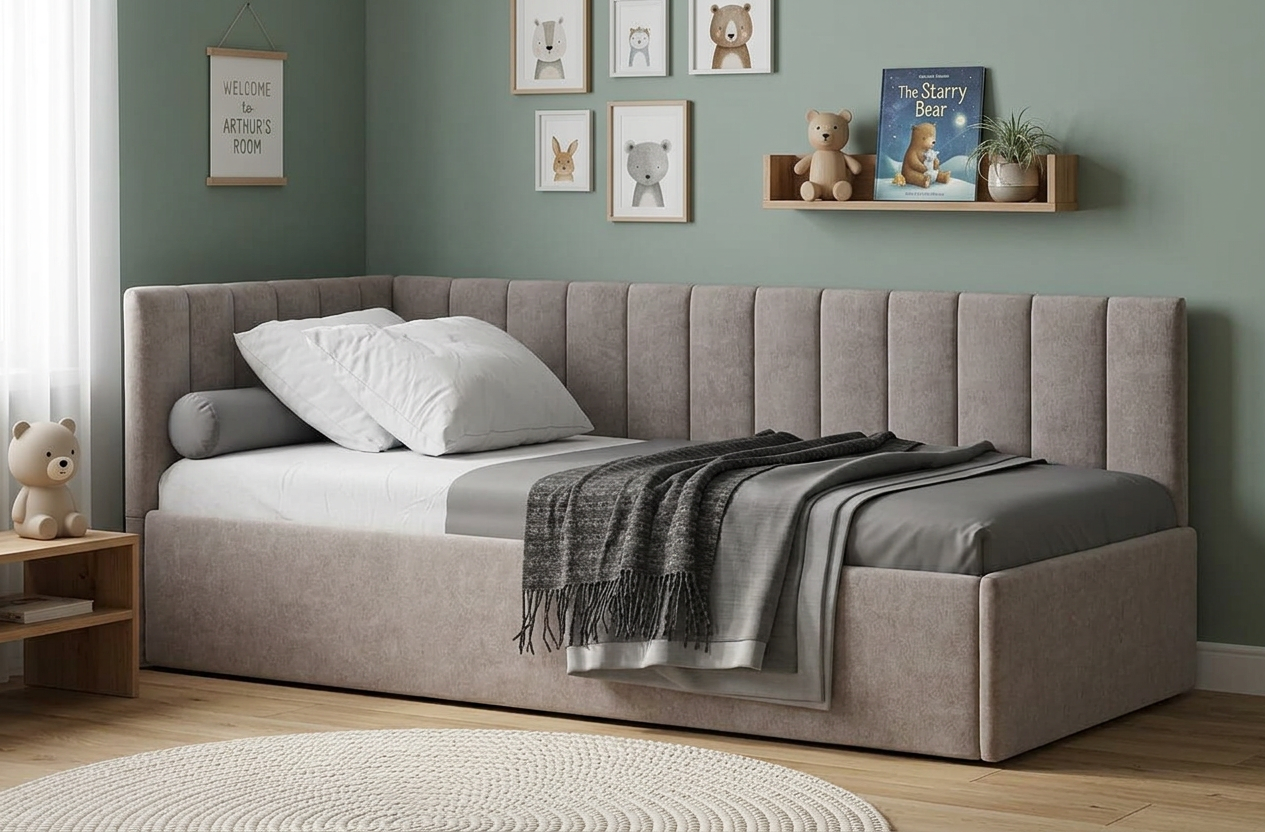 • Универсальная угловая кровать с мягким изголовьем: устанавливается на левую или правую сторону