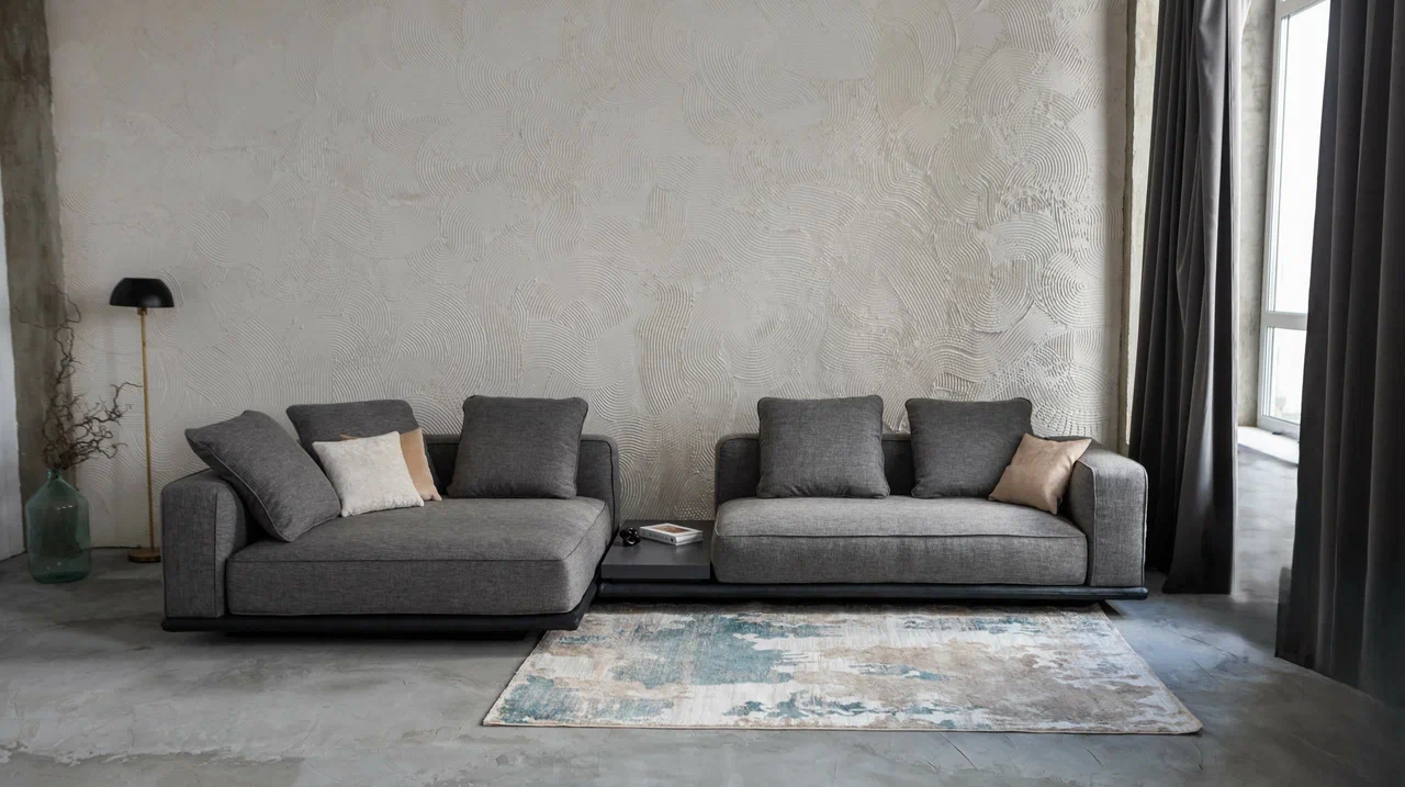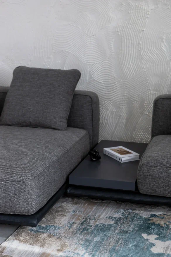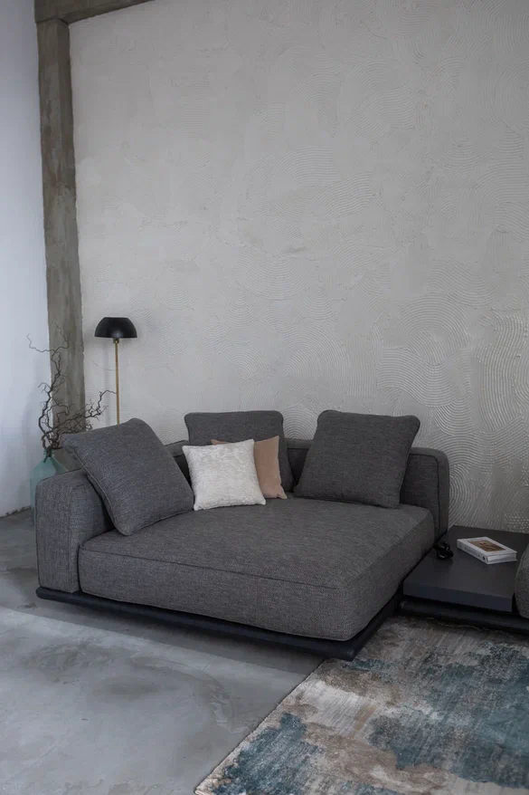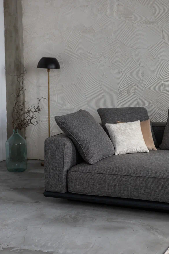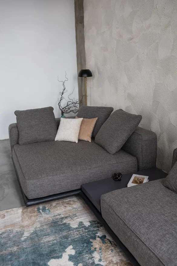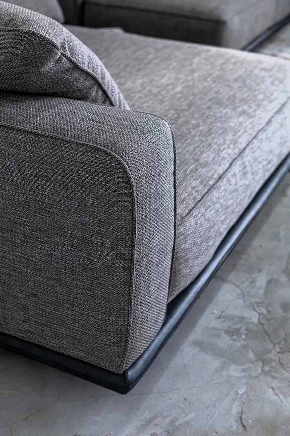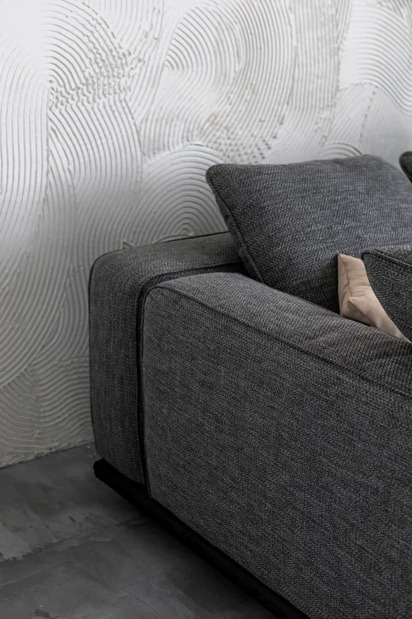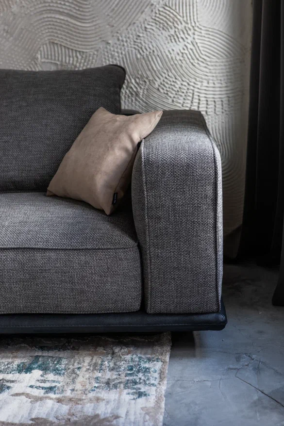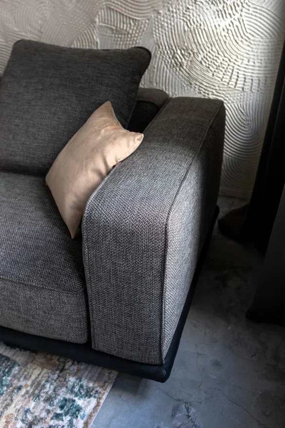 Диван Фабио — элегантный модульный диван выверенных пропорций. Дизайн гармонично сочетает в себе формальную строгость и высокую степень комфортабельности. Опоры - основание из черного металла приподнимает модель над полом, что создаёт ощущение парящей конструкции.