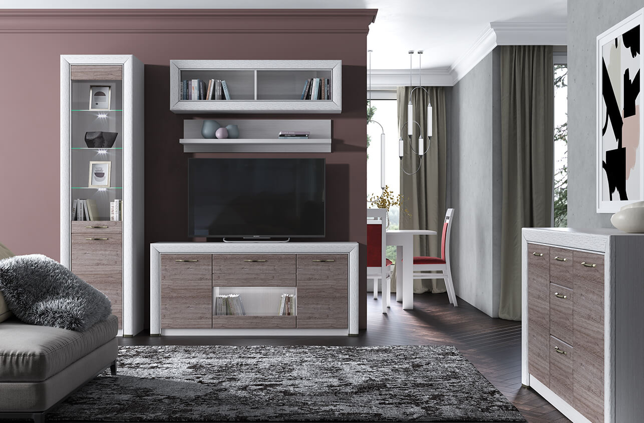 Из элементов мебели Оливия можно скомпоновать функциональные гостиные, спальни и домашние кабинеты. Основой для обстановки гостиной могут стать различные варианты шкафов-витрин в сочетании с тумбой для телевизора и аудиотехники, а также открытые и закрытые навесные полки. Прекрасно вписывается в такую гостиную сервант и обеденный стол с возможностью раздвижения, особенно если гостиная одновременно носит функцию столовой. Лаконичный журнальный столик непременно завершит композицию.
