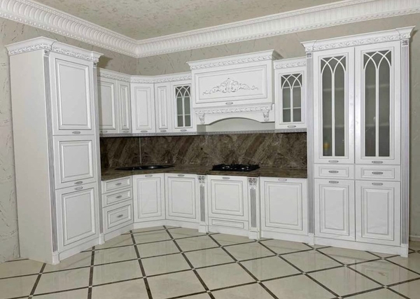 Прямая кухня «Монако»  2,4 белая/серебро – изображение 1 1 из 2