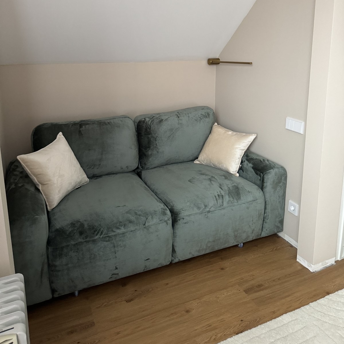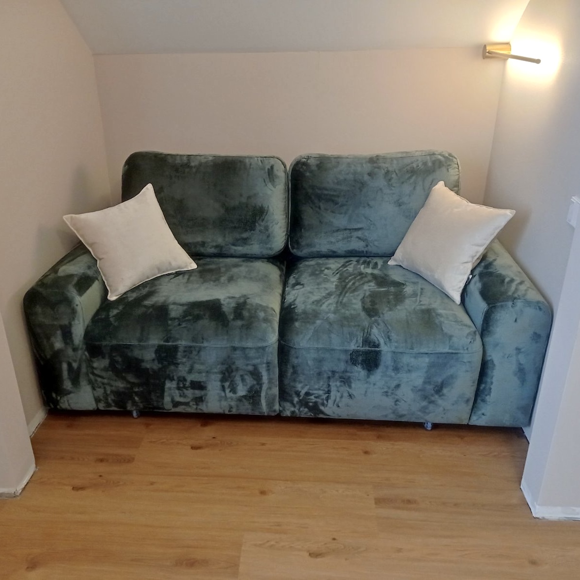 Наполнение дивана НПБ (Независимый Пружинный Блок) + ППУ 30й плотности + Memofy Foam (пена с эффектом памяти) + 300й холкон,  благодаря этом у него высокая степень мягкости.