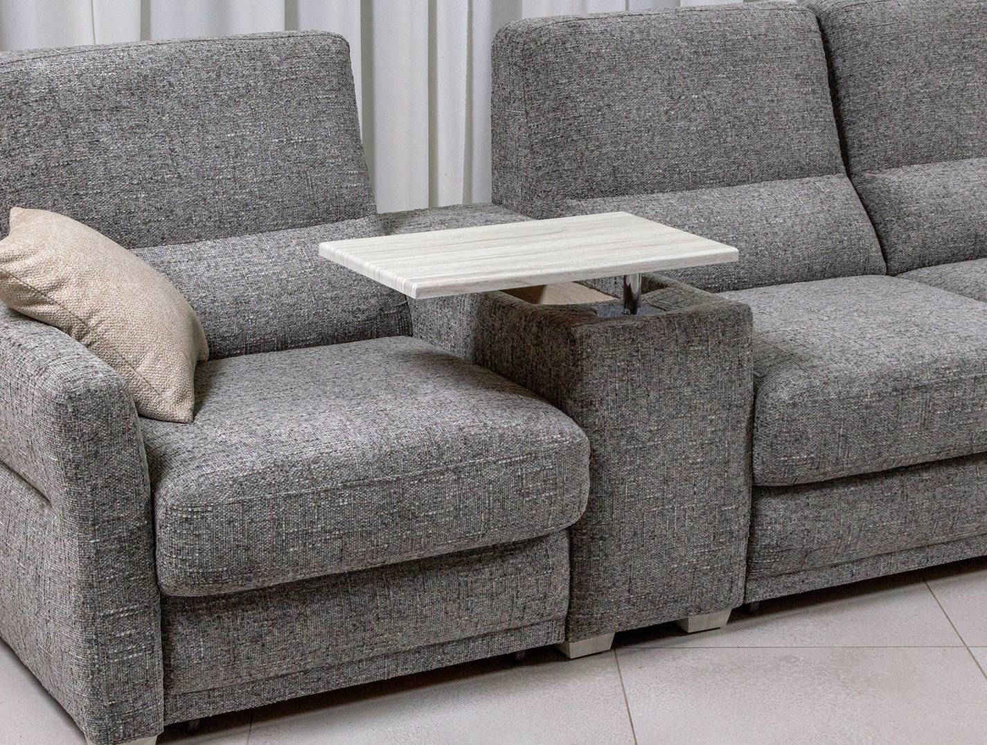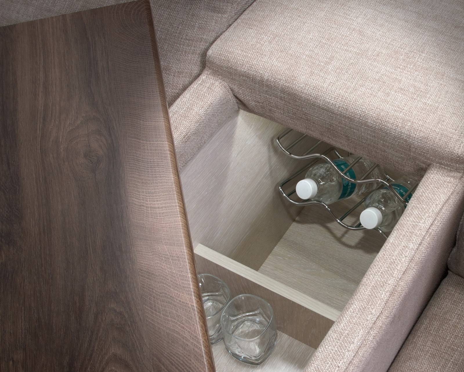 В «секции угловой» предусмотрена возможность монтировать универсальное зарядное устройство с двумя USB_А и двумя USB_С портами, четырьмя сетевыми розетками и беспроводной зарядкой для смартфонов.