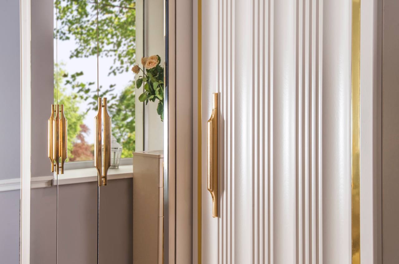 Мебель для спальни ЗАМИРА имеет множество преимуществ — от безупречного внешнего вида до качества материалов и срока службы. Предметы этой линии выполнены в стиле неоклассики и наделены максимальной функциональностью. Благодаря этому мебель идеально вписывается в соответствующий интерьер. Компания-производитель «ЭРА» доставит товар в любой уголок страны, чтобы создать там царство роскоши и элегантности. Цвет - беж Фасады –крашенные фасады из МДФ с фрезеровкой Корпус – ЛДСП все зеркала с бронзовой амальгамой, придает зеркалу бронзовый и очень модный оттенок На изголовье с зеркальными вставками и изножье находится мягкое основание Фурнитура – производители фирм BOYARD, HAFELE, SALICE все двери шкафов и ящики оснащений доводчиками.