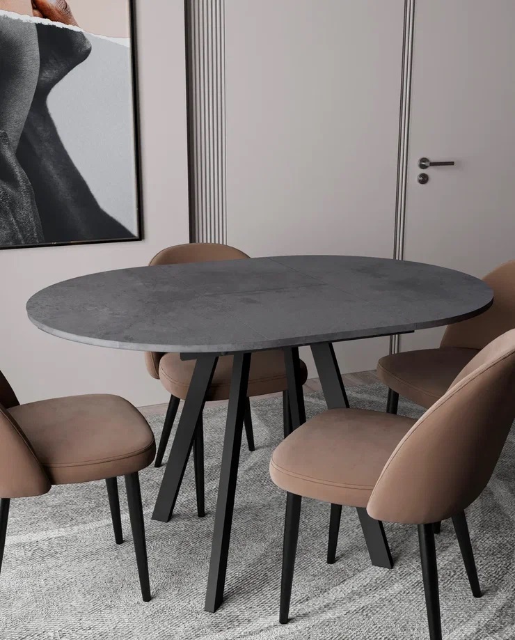 Стол ВВР Элип Камень темный/черный профиль, ЛДСП