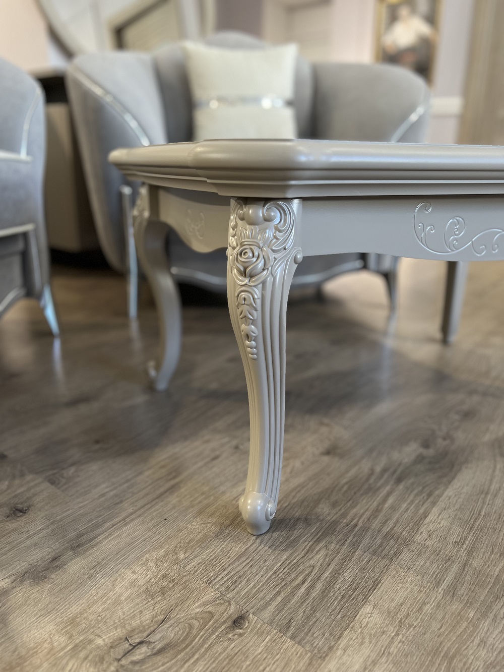 Если вы хотите создать в своей гостиной неповторимую обстановку тепла и уюта, столик Мокко обладает всеми необходимыми качествами для этого. Являясь ярким представителем нетленной классики, он насыщен цветом. Цвет - серый  Корпус - ЛДСП Декоративные элементы и накладки - ППУ и ПУ, класс экологичности Е1 (полностью безопасна)