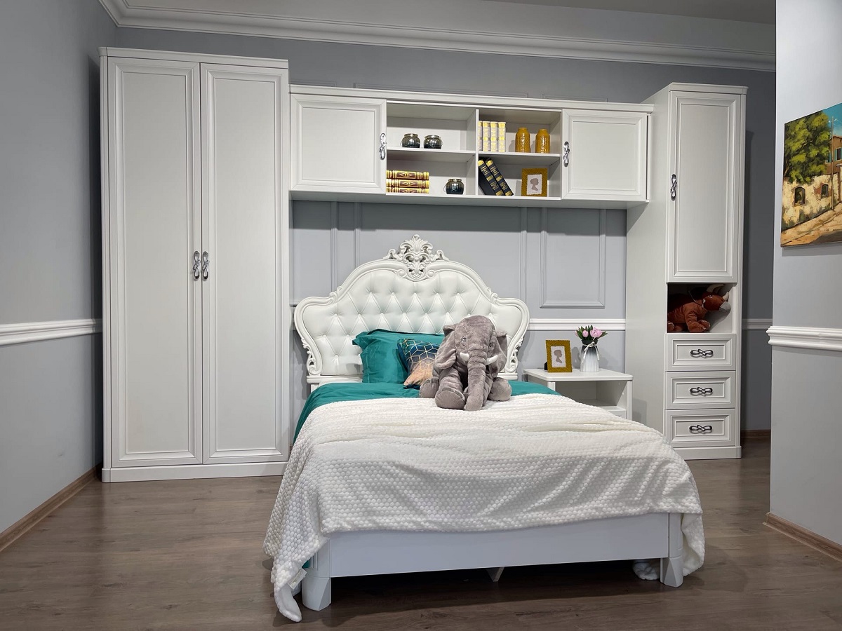 Детская пальня Мишель — это модульная спальня с рядом очень больших преимуществ, которые выгодно отличают спальню Мишель от наших других спален и спален наших конкурентов. Преимущества детской Мишель: Стиль – неоклассика (модное сейчас направление в дизайне), эта спальня подойдет к любому интерьеру Цвет – белый матовый Фасады – рамочные крашенные фасады толщиной 22 мм Ящики – направляющие всех ящиков скрытого типа и оснащены доводчиками Дверные петли - все петли на шкафах оснащены доводчиками Фурнитура – GTV крупнейший польский производитель мебельный фурнитуры Топы – все топы на тумбах и комодах изготовлены из крашеного МДФ Регулировка – опоры всех изделий регулируемые, то есть даже на кривом полу шкаф будет стоять ровно Упаковка – все детали проложены пенопластом и изокомом, углы на упаковках с фасадами и корпусом дополнительно защищены