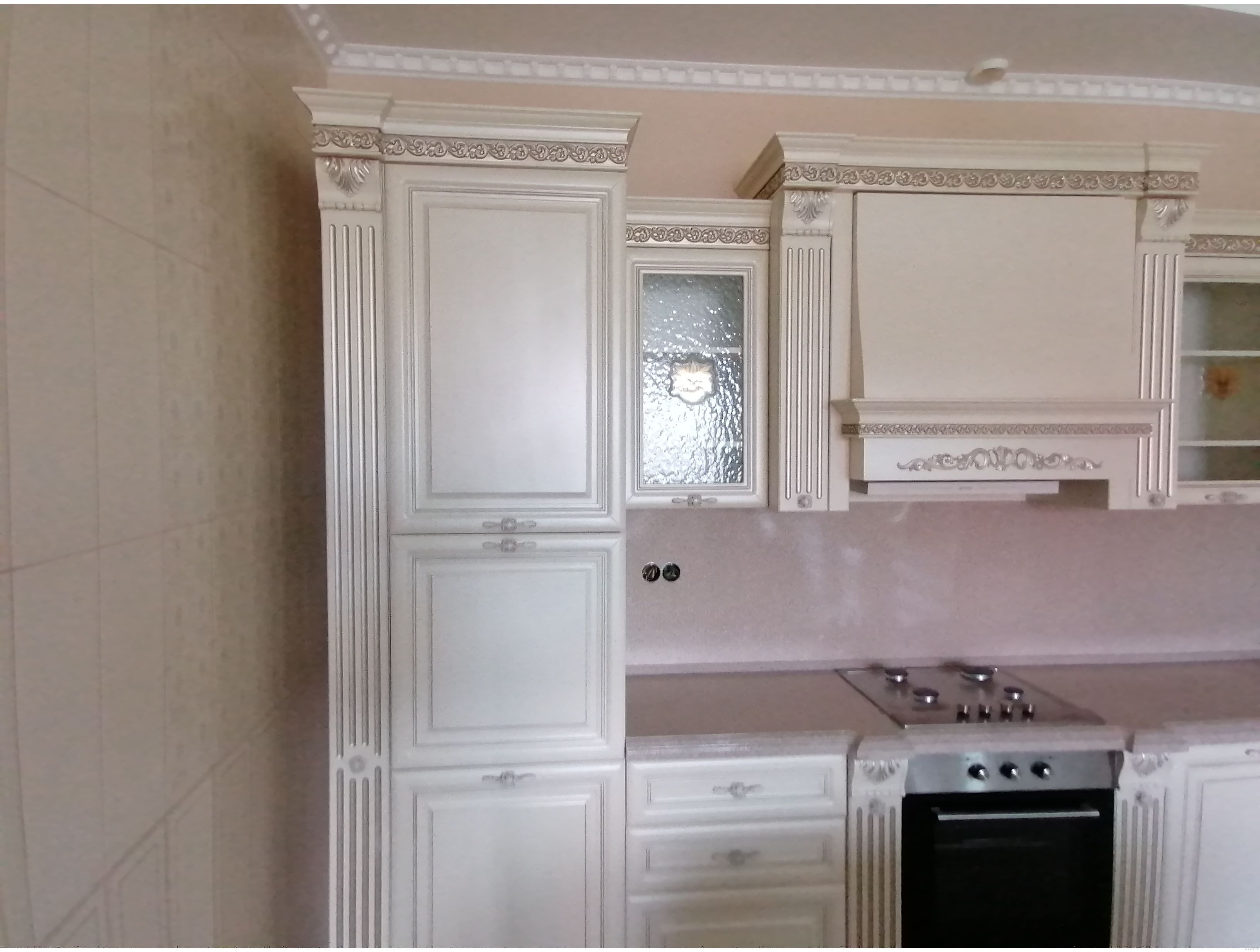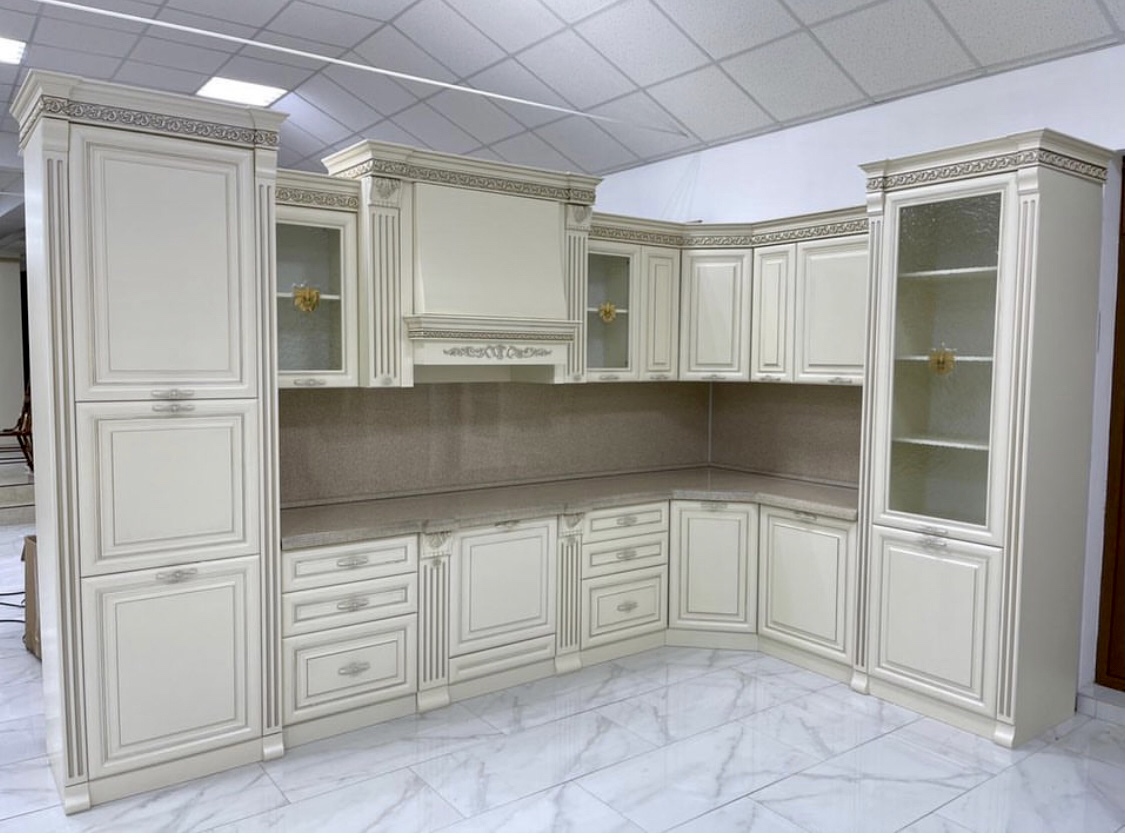 Кухня модульная "Берта" 428.6 x 60 x 266.3 см Скоплектуйте свою кухню "Берта" от фабрики Арида. Наполнение кухни "Берта" Фасады МДФ цвет жемчуг + стекло Дверные петли с доводящим механизмом Выдвижные ящики оснащены механизмом МЕТАBOX с несущей способностью до 30 кг. Столешница толщиной 48 мм. с фрезерованным краем выполнена из влагостойкого ЛДСП. Пристенный борт с плинтусом Посудосушитель Высота 2,45 м, Составкухни Берта 4,2 фабрики АРИДА: Кухоный гарнитур «Берта» прямая 2,7 м. Кухонный пенал «Берта» с духовым шкафом 750 Кухоный пенал «Берта» остекленный 750
