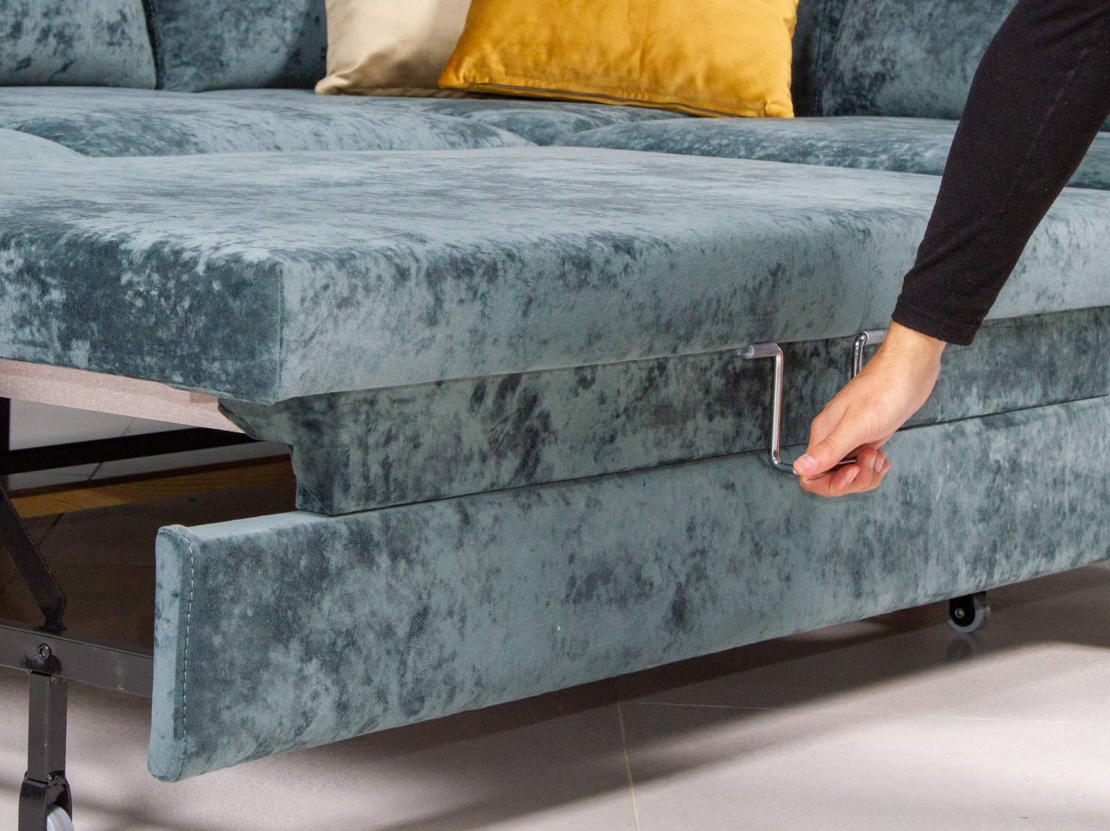Размер спального места в линейном диване 138х185см, в угловом диване – 138х210см. Механизм трансформации спального места для ежедневного использования «дельфин» позволяет раскладывать диван легко и просто. А опоры дивана высотой 10см добавляют модный акцент. На выбор три цвета опор из массива дерева и опоры из хромированного металла.