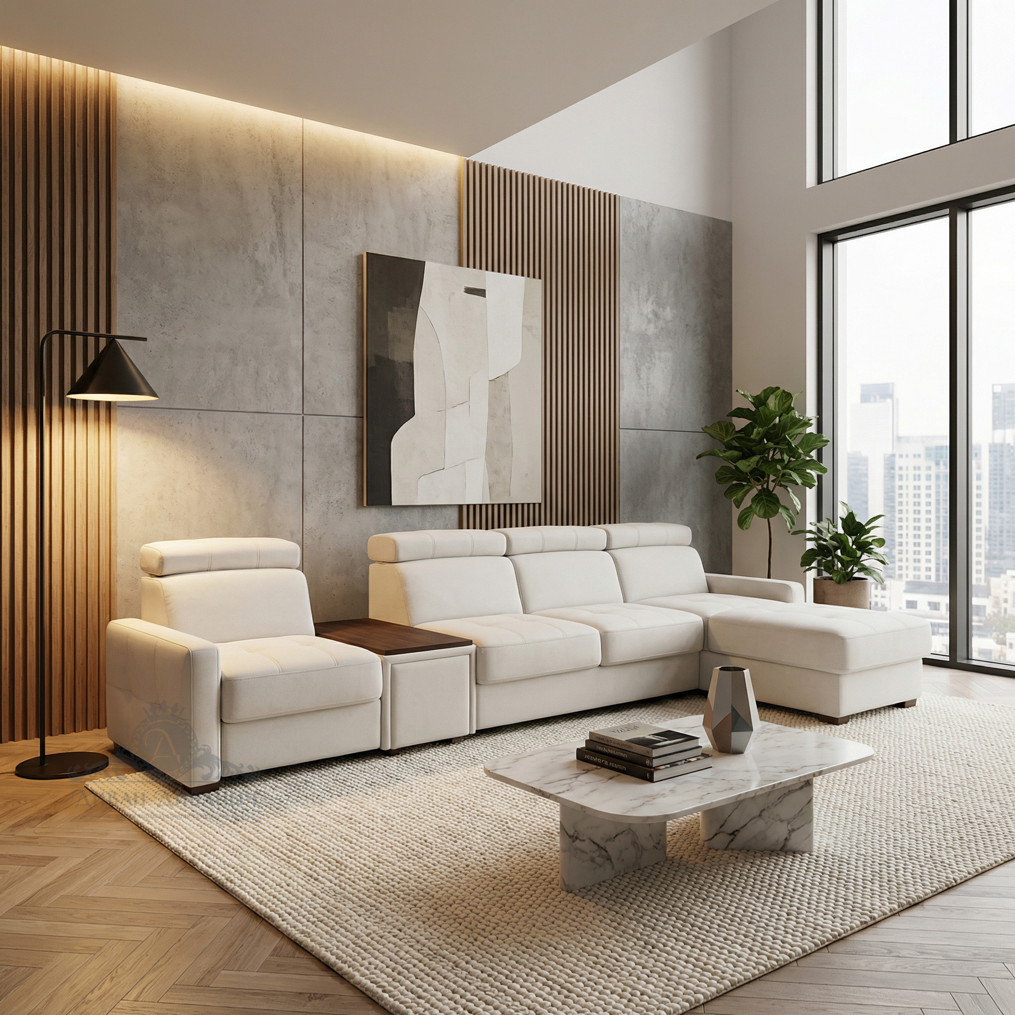 Стёганый дизайн сидений добавляет декоративности и классических ноток элегантному и современному дивану. Регулируемые по высоте подголовники и сбалансированные по мягкости подушки спинки создают персональный комфорт.