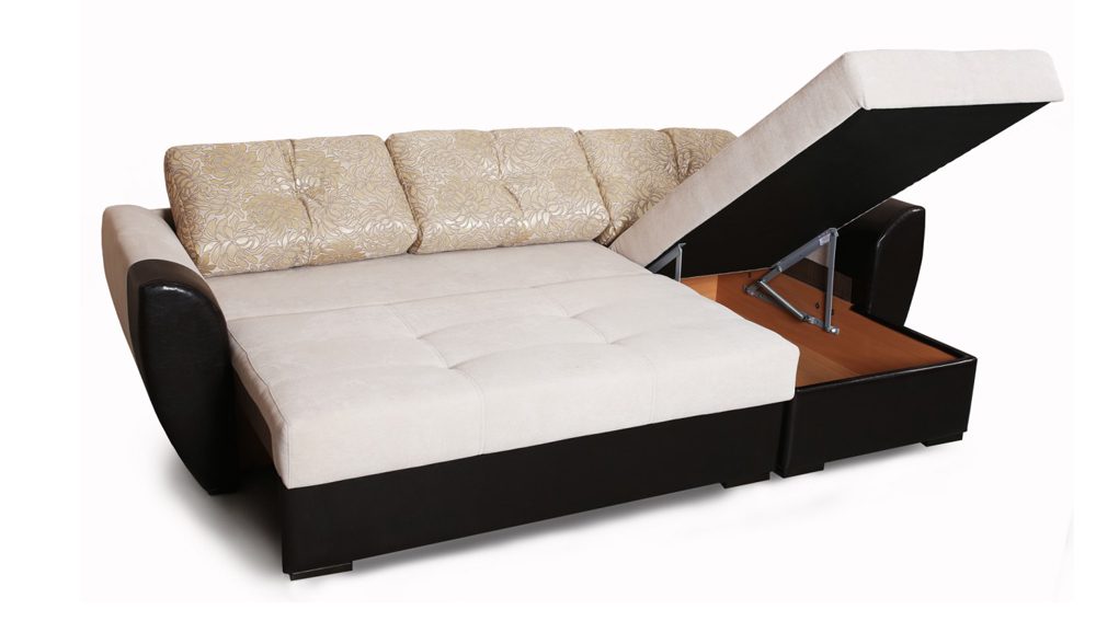 Широкое спальное место, а также большое пространство для хранения постельного белья. Может быть на две стороны.
