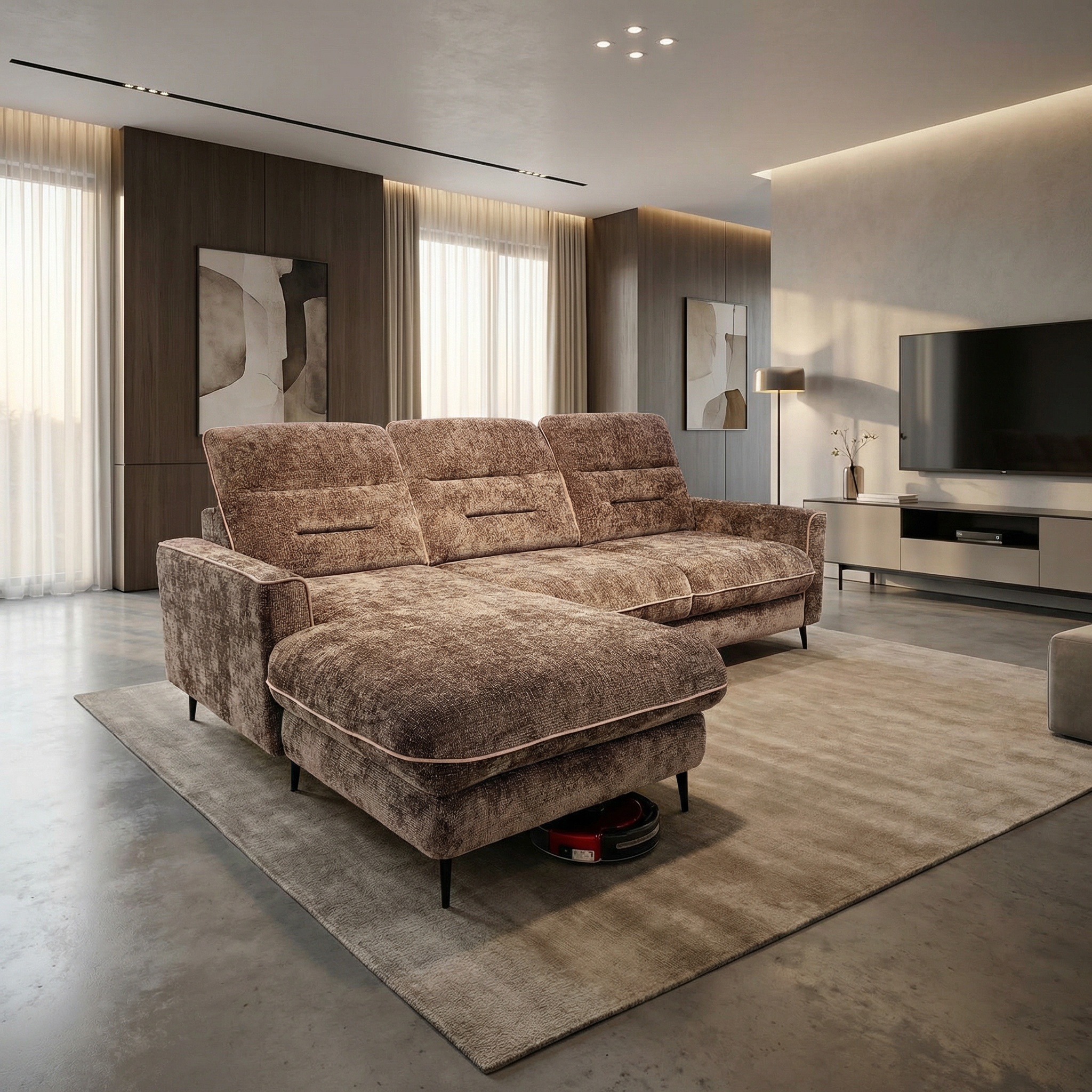 Угловой диван «Ретро» Узкая царга и модный акцент, в виде «парящего низа» на легких минималистичных опорах высотой 13см, указывают на принадлежность к современной стилистике. Но у модели присутствуют и нотки ретро. Классический кант и проработанная до мелочей спинка дивана - тому подтверждение. Ретро самодостаточен, но совсем не прост, как может показаться сначала. Уникальная конструкция этого дивана объединяет воедино подушку спинки и подголовник, в который интегрированы механизмы трансформации с изменяемым углом наклона и фиксацией в нескольких положениях. Высокая спинка дивана обеспечивает отличную поддержку позвоночника. Мягкие линии силуэта дополнены глубокой посадкой сиденья и, как следствие, повышенной комфортностью. Линейный Ретро изготавливается в двух размерах по габариту длины: диван 2 – 1760мм и диван 3- 2360мм. Диван 3 может комплектоваться механизмом трансформации спального места «пума».