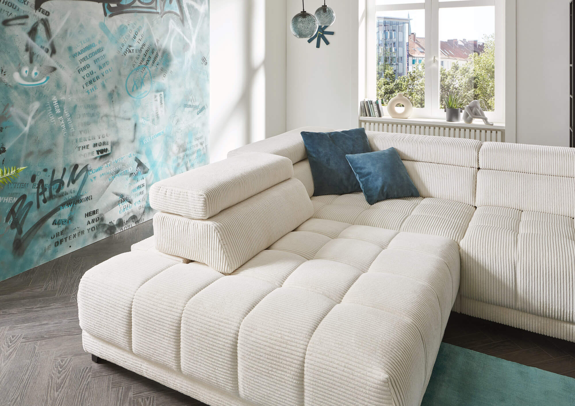 Стёганый дизайн сидений добавляет декоративности и классических ноток элегантному и современному дивану. Регулируемые по высоте подголовники и сбалансированные по мягкости подушки спинки создают персональный комфорт.