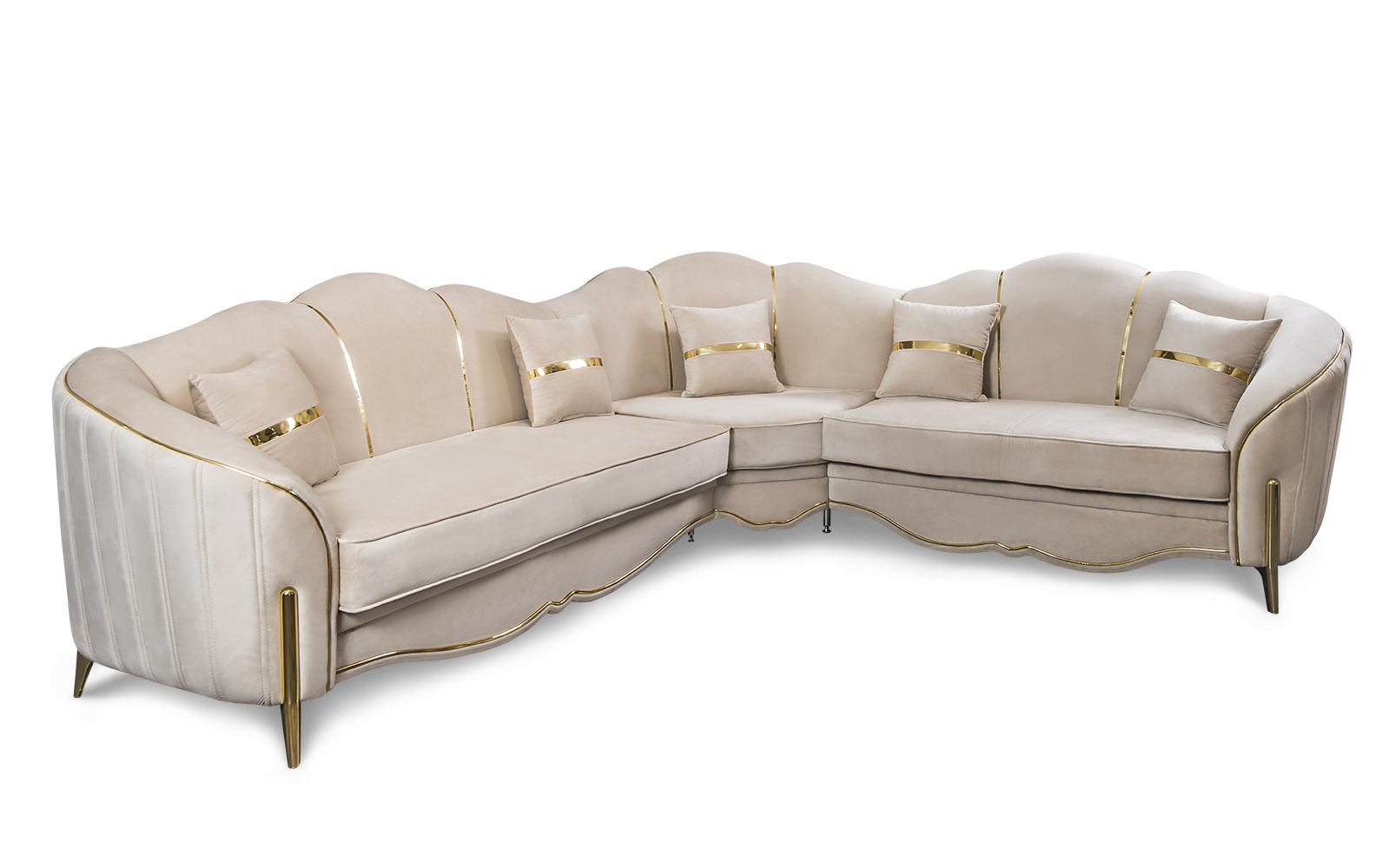 Угловой классический диван Лара «Lara» 3-У-2 беж золото