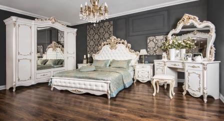 Спальня «Флоренция», вдохновлена традициями итальянских мастеров, в благородных оттенках «белый перламутр» придётся по вкусу людям, предпочитающим натуральные цвета и фактуры.