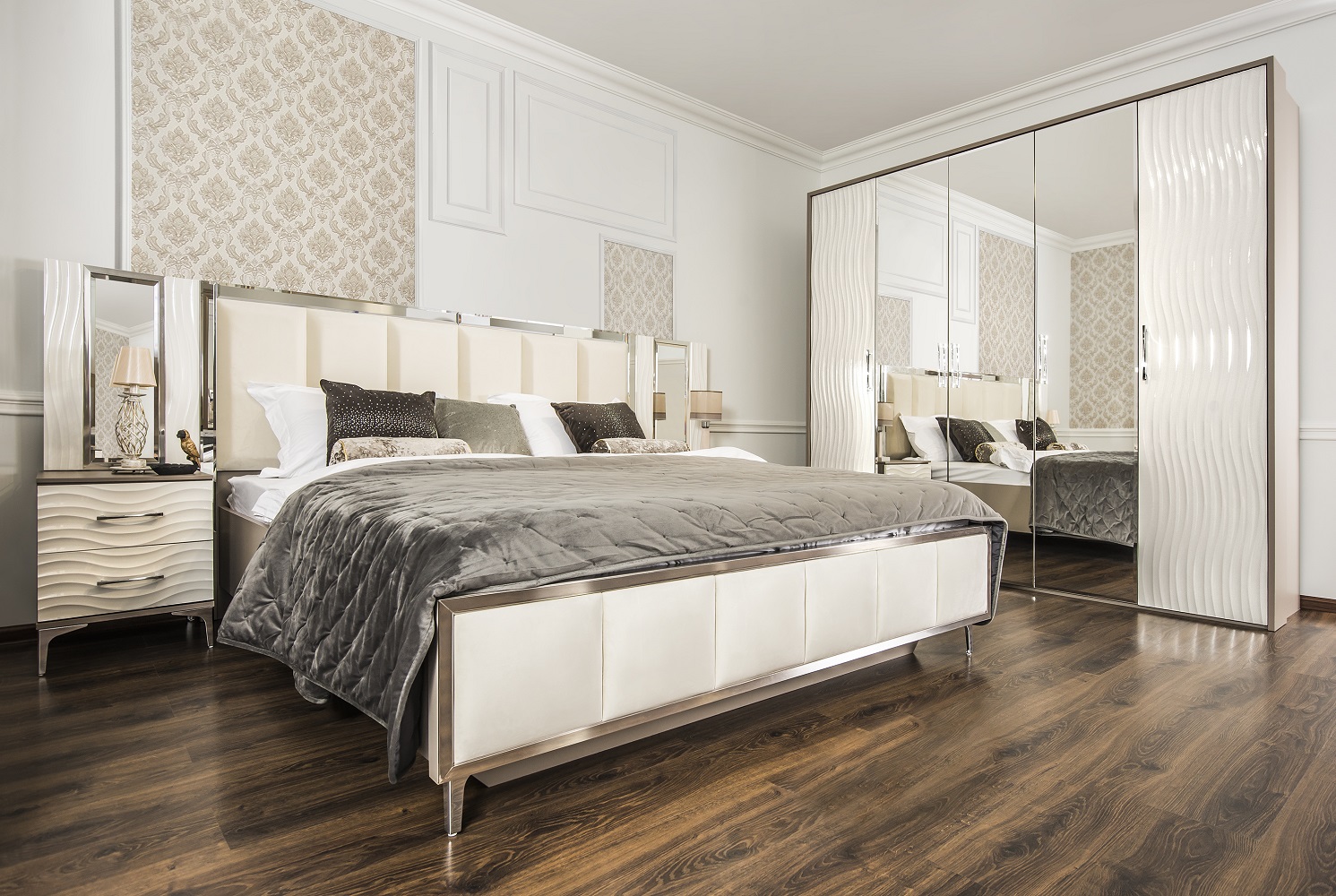 Кровать с декоративными фацетированными зеркальными рамками на изголовье – делает ее центром притяжения!